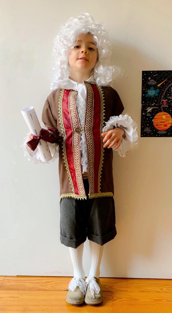 Este ano, imbuído na sua crescente paixão por música clássica, disse-me, com a maior naturalidade do mundo: “Mãe, quero mascarar-me de Händel.” E acreditem ou não, perante isto suspirei de alívio, há dois anos tive que inventar e trazer à vida um Saturno em 24h!